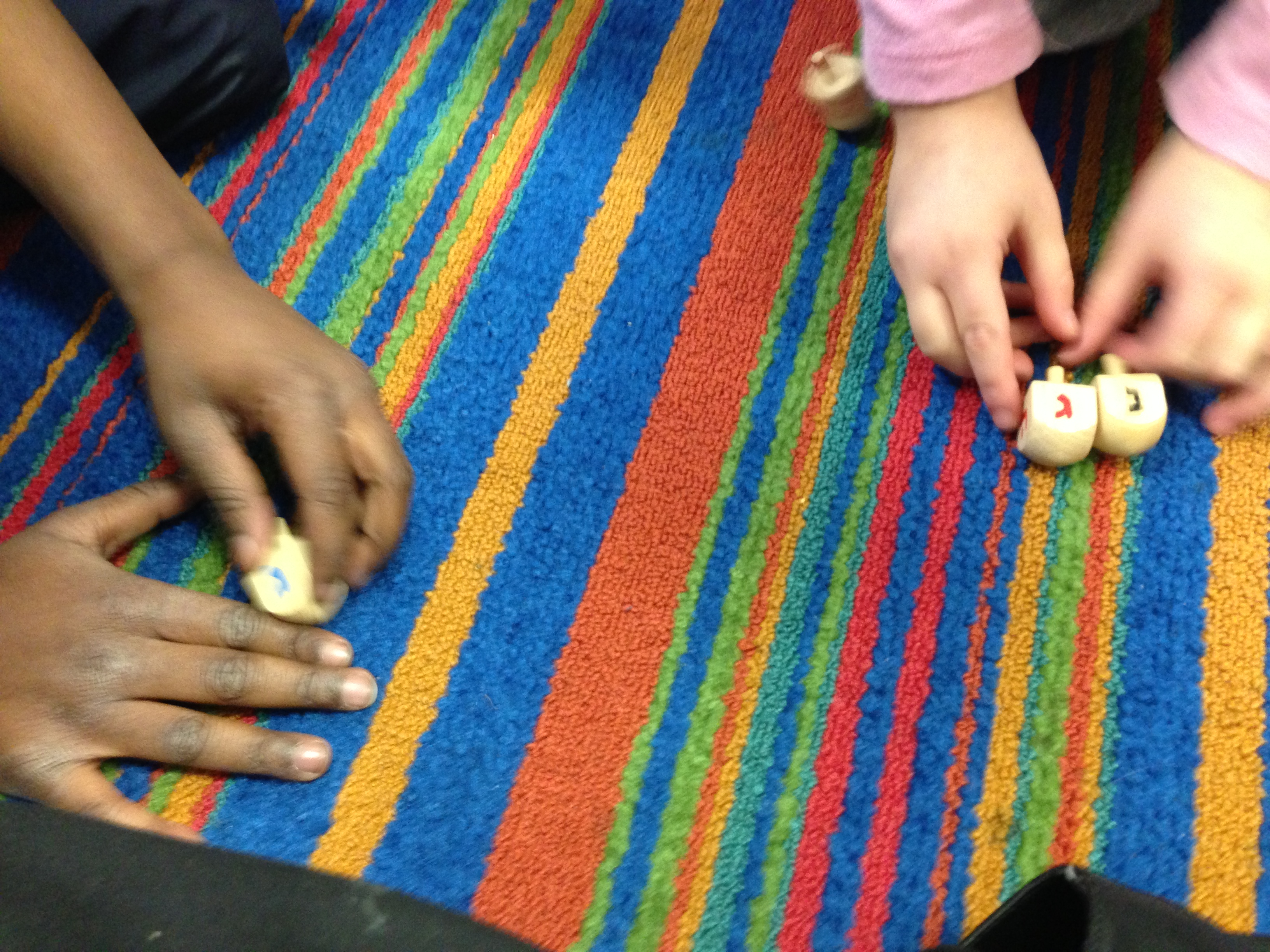After finishing these lessons, I am excited the activities went very well. Students didn’t have a lot of background knowledge about Hanukkah or Kwanzaa. They were curious, interested, and tried hard reading the difficult words in the mini books. While reading, we compared and contrasted details between the holidays. They asked about certain vocabulary words, and it was eye-opening that I had to explain who African Americans are to help them understand who celebrates Kwanzaa. We also discussed how Kwanzaa was different than the other holidays since it isn’t a religious holiday and was created in 1966. I asked the students if it was an old or new holiday, and they said old; I had to give them context to compare 47 years versus 2000 with Christmas so they understood it’s fairly new! Students loved playing the game of dreidel; I explained the rules and let them spin for fun. Students wanted to know what letter they landed on and what it meant; there were cheers when they landed on Gimmel!