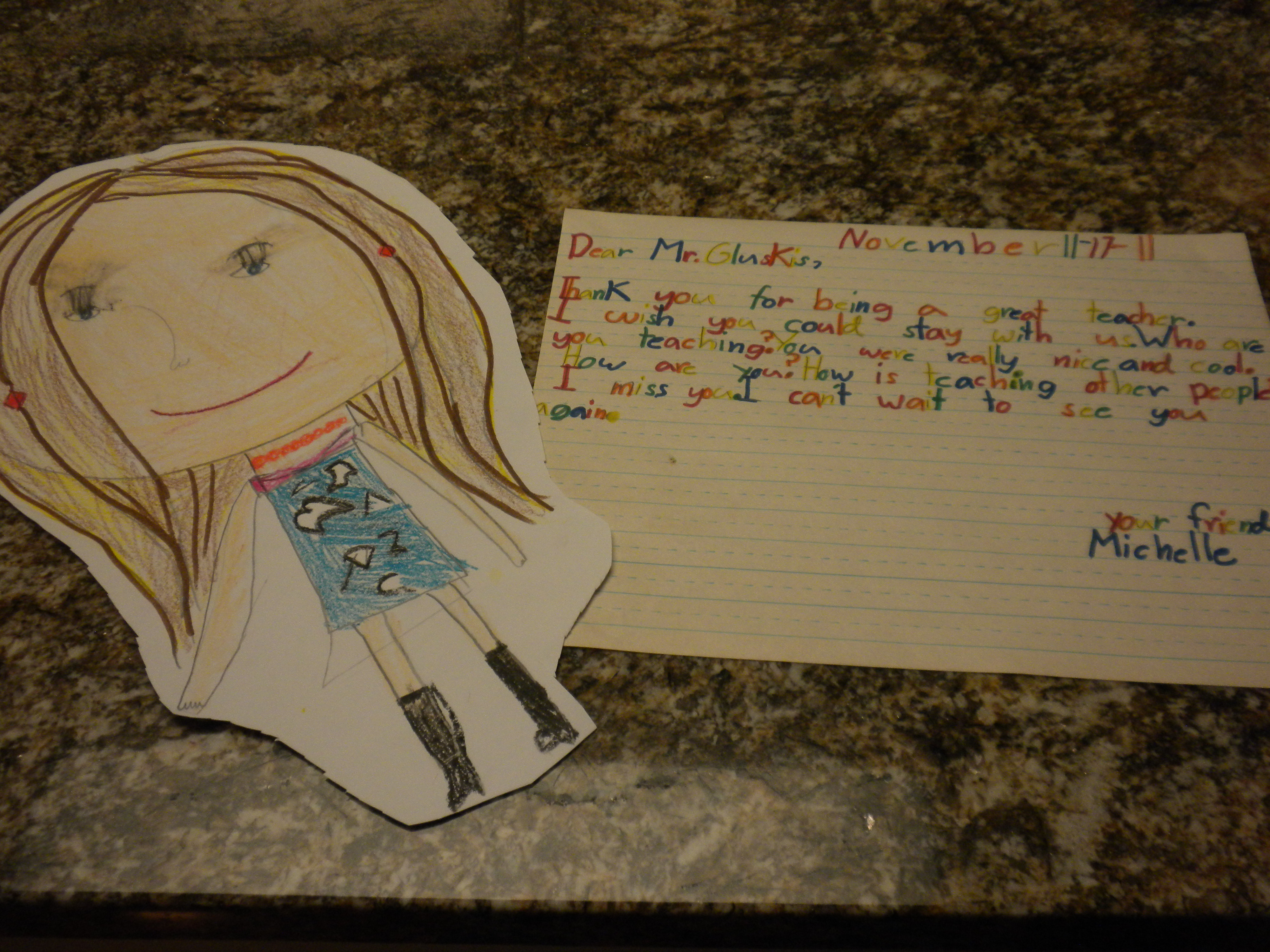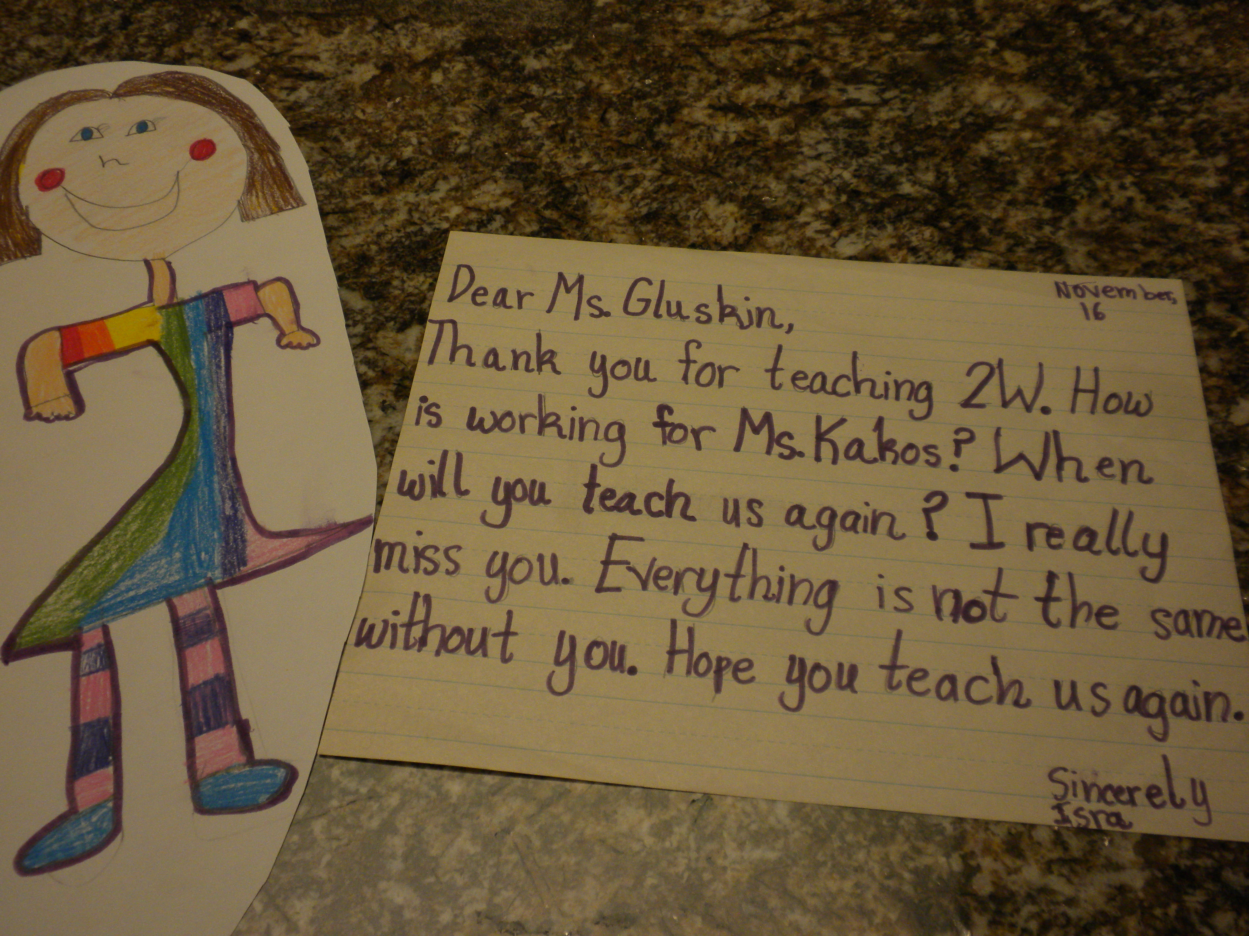 After my substitute position was over, some students decided to write friendly letters to me. The assignment was around Thanksgiving, so the students wrote why they were thankful for a specific teacher. It was really sweet the students chose to write to me, and they wrote very kind thoughts saying why they appreciated me teaching them in second grade. Here are a few examples of their letters.