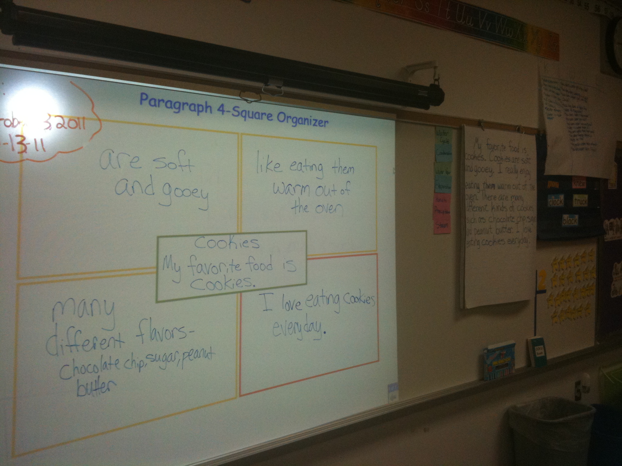 One writing unit in second grade was how to write a paragraph. This required me to model and guide students through the process. To organize their ideas, students used a foursquare planning sheet and color-coded the topic sentence, details, and concluding sentence. Here is an example of a foursquare chart I modeled when introducing the concept. After I modeled this example and students completed their own foursquare planning sheets, students wrote their own paragraphs about their favorite foods. Here is an example of a student’s paragraph. Even though it is basic, it includes the basic components of a paragraph, demonstrating his initial understanding. As the mini unit progressed, students became more independent while writing and started including more details and sentences. This example of a paragraph written after a local field trip shows growth and a deeper understanding of communicating ideas through writing. |